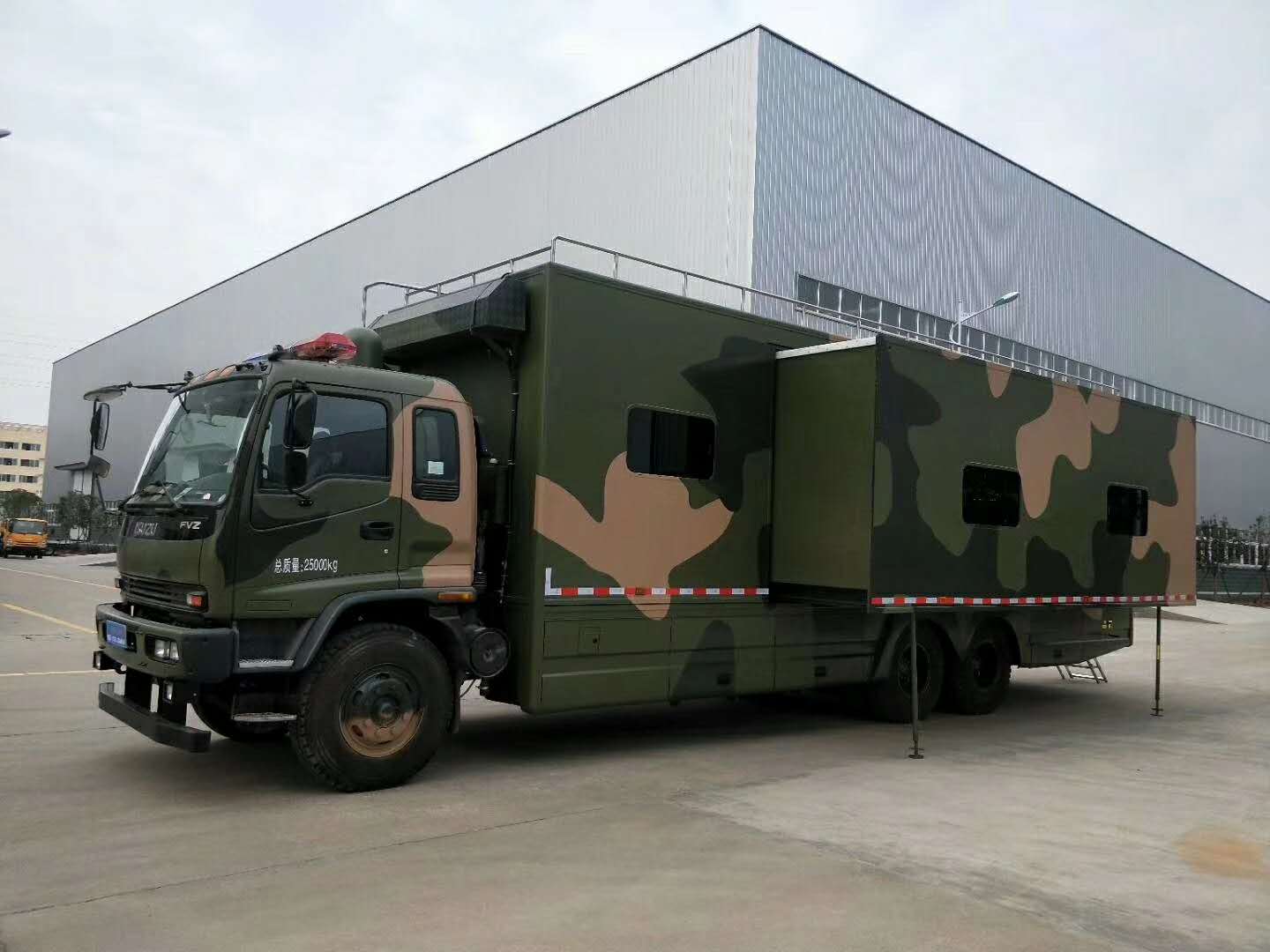 五十鈴底盤、箱體(鋼骨架、內(nèi)、外蒙皮)擴(kuò)展宿營方艙、宿營設(shè)施、上下床鋪、空氣調(diào)節(jié)系統(tǒng)、影視系統(tǒng)、電氣系統(tǒng)、安全系統(tǒng)整車配備衛(wèi)生間、廚房柴油發(fā)電機(jī)、蓄電池、凈水箱、污水箱‘暖風(fēng)機(jī)、兩臺(tái)空調(diào)外加輔助裝備等。