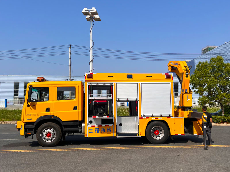 主要配置:發電機組、進口大流量排水泵、靜音廂體、車載空調、液壓支腿、配電控制系統、電纜絞盤、防爆照明燈、車載升降照明燈及搶險工具等。