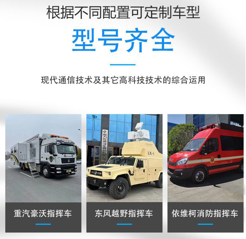 車載衛星通信設備、無線通信系統、車內辦公、供電及配套系統等。